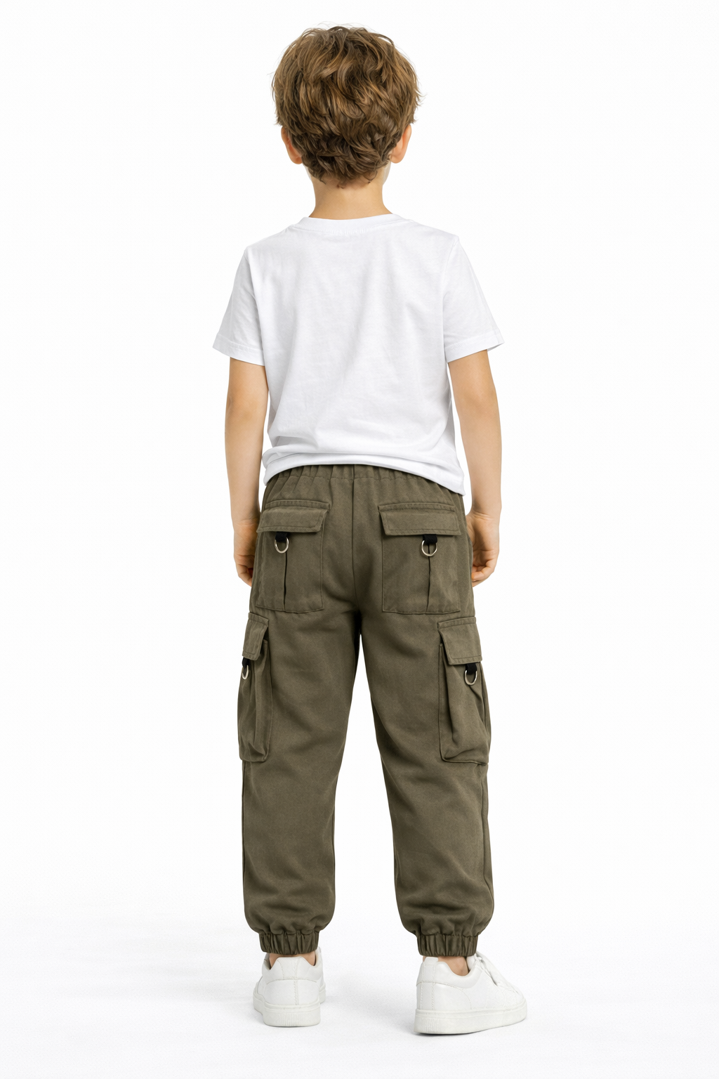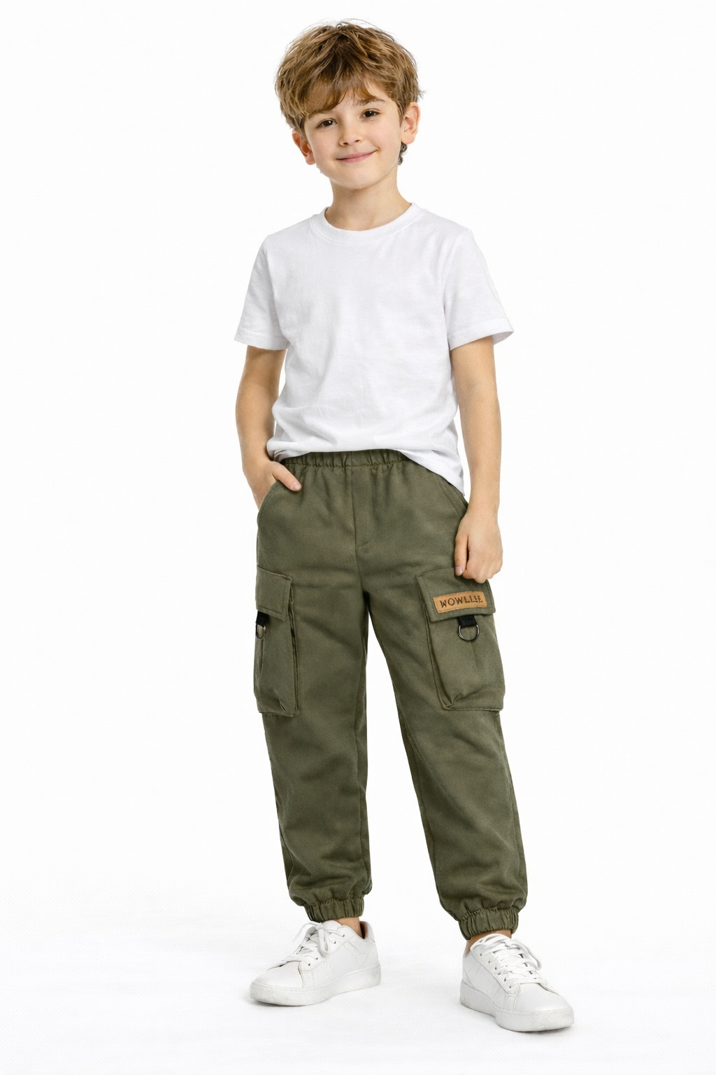 Wygodne i stylowe spodnie dresowe chłopięce typu cargo, idealne na co dzień, do szkoły, przedszkola, na spacer i aktywności sportowe. Uszyte z wysokiej jakości materiału, który łączy komfort noszenia z trwałością.